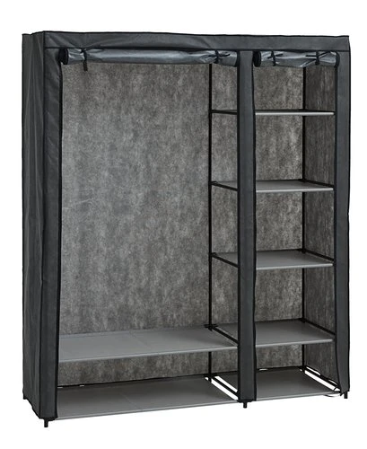 Acier et polypropylène. Intérieur de garde-robe : 5 étagères et 1 tringle à vêtements. l149 x H174 x P50 cm
