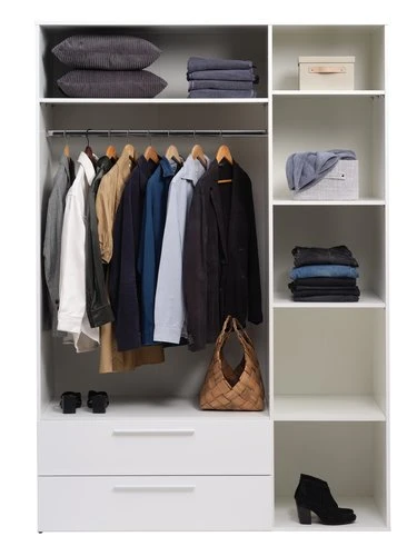 | Inclus | 1 tringle à vêtements 5 étagères, 2 tiroirs, 3 portes |