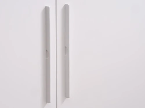 En panneau de particules mélaminé. 3 portes soft-close, 2 tiroirs soft-close. Intérieur de garde-robe : 5 étagères et 1 tringle à vêtements. l144 x H208 x P62 cm