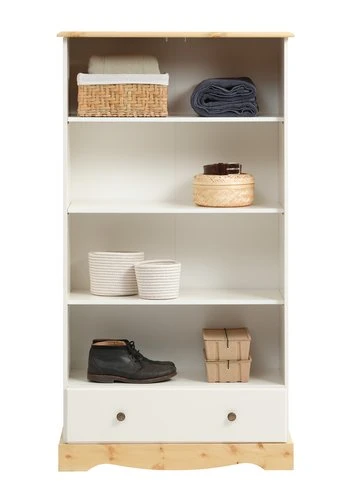 Pin massif et MDF (panneau de fibres moyenne densité). Intérieur de garde-robe : 3 étagères. l82 x H153 x P39 cm