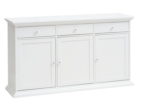 En panneau de particules, placage décoratif feuille. 3 portes, 3 tiroirs avec glissières d’extension complète. l155 x H89 x P44 cm