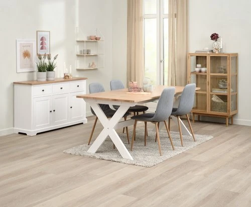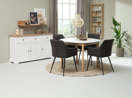 ROSKILDE L140 Table ChĂȘne Naturel + 4 BISTRUP Chaises Olive