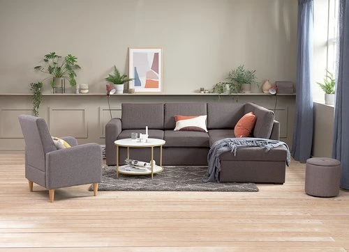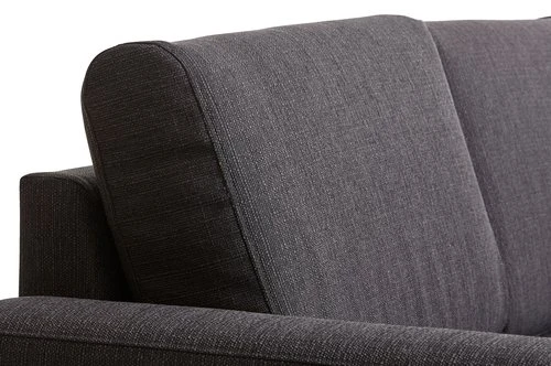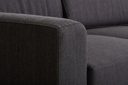 En MDF, lamibois, contreplaqué. Pieds : bouleau massif. Garnissage : mousse polyéther (25 kg/m³). Revêtement : polyester. Avec espace de rangement. Non réversible. 3 personnes. Couchage : 150×195 cm. l229 x H86 x P86/203 cm