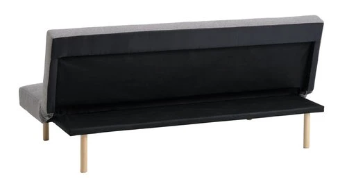 En contreplaqué, eucalyptus massif, polypropylène, acier. Garnissage : mousse polyuréthane (10/45 kg/m³). Revêtement : polyester. Pieds : bois de caoutchouc massif. 2 places. Couchage : 108×80 cm. l180 x H82 x P92 cm