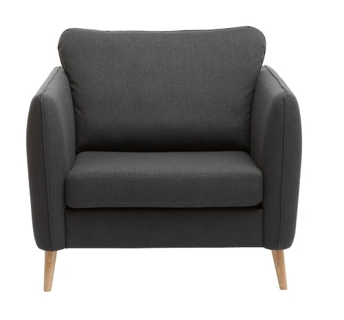 Structure : panneau de particules, contreplaqué. Garnissage : mousse polyuréthane (16/20, 30/35 kg/m³). Revêtement : polyester. Pieds : hêtre massif. l94 x H82 x P84 cm