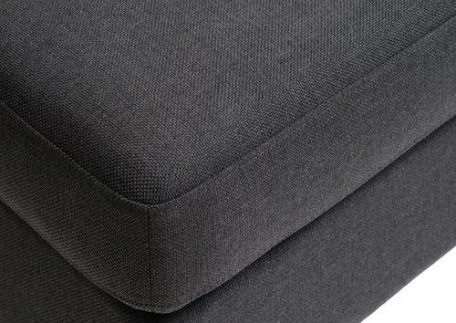 En panneau de particules contreplaqué. Pieds : hêtre massif. Garnissage : mousse polyester (30/35 kg/m³). Revêtement : polyester. l68 x H43 x P60 cm