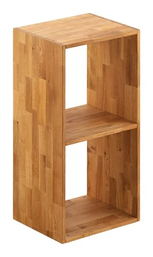 En panneaux de particules, placage chêne et chêne massif. Huilé. 2 tablettes. l36 x H71 x P30 cm