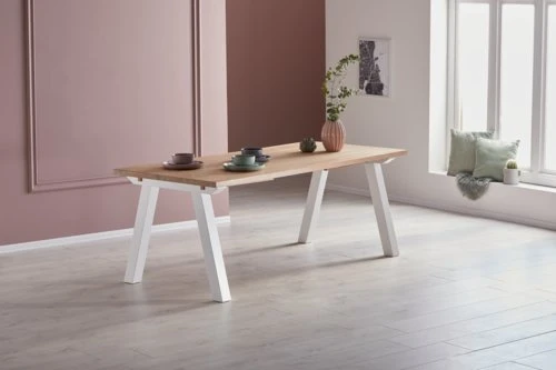 Cadre, plateau : placage chêne, chêne massif. Piètement : MDF, bouleau massif, pin massif. Huilé. Excl. rallonges. l90 x L200 x H75 cm