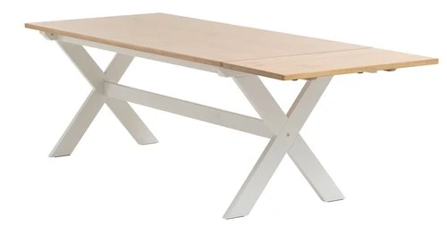 En bouleau et pin massif, acier. Vernis. Excl. rallonges. l90 x L190 x H75 cm