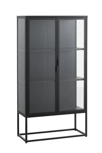 En acier et verre trempé. 2 portes, 2 étagères. l80 x H150 x P35 cm